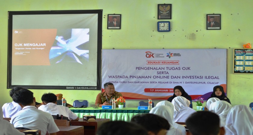 SMANDAY Selasa 17/1/23 - SMA Negeri 1 Dayeuhluhur menyelenggarakan kegiatan Edukasi Keuangan Pengenalan Tugas OJK serta Pinjaman Oline dan Investasi Ilegal yang bekerjasama dengan OJK Purwokerto. Kegiatan diikuti oleh siswa kelas X SMA Negeri 1 Dayeuhluhur serta didampingi oleh guru dan staf SMA Negeri 1 Dayeuhluhur. Kolaborasi antara OJK dengan SMA Negeri 1 Dayeuhluhur ini bertujuan membentuk siswa yang melek literasi keuangan. Selain itu, kegiatan ini juga menjadi ajang kolaborasi antara institusi pendidikan dengan BUMN.
